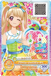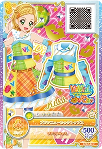 Brand New Look Coord (ブランニュールックコーデ) is a rare coord by the pop brand Vivid Kiss. It debuted in Part 2 of the promotional collection of the Data Carddass Aikatsu on Parade! series and did not appear in the anime. It shares its design with the Brand New Days Coord.