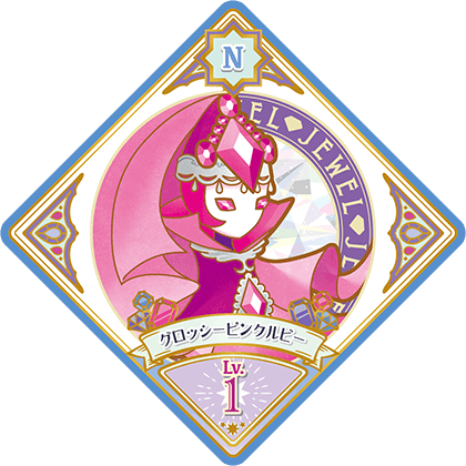 Glossy Pink Ruby (グロッシーピンクルビー) is a Jewel attributed Dressia. It debuted in Part 1 of the Data Carddass Aikatsu Planet! series and has yet to be seen in the live-action and anime.