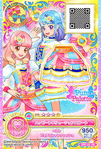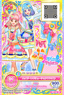 Happy Revolution Coord (ハッピーレボリューションコーデ) is a premium rare coord made by the unit-brand Pure Palette and is Aine Yūki's Pure Palette Unit Coord. It first debuted in Part 5 of the Data Carddass Aikatsu Friends! series.