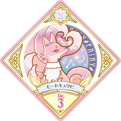 Heat Kyūbi (クールキュウビ lit. nine-tailed fox) is a Fairy attributed Dressia. It debuted in Part 1 of the promotional collection of the Data Carddass Aikatsu Planet! series and has yet to be seen in the live-action and anime.
