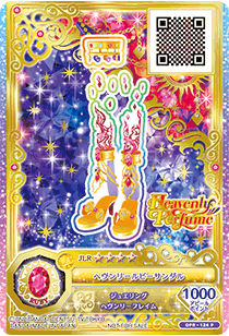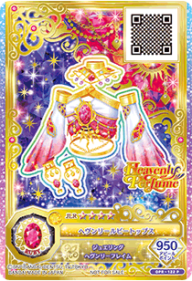 Heavenly Ruby Coord (ヘヴンリールビーコーデ) is a jeweling rare coord by the sexy brand Heavenly Perfume. It first debuted in Part 1 of the Data Carddass Aikatsu Friends! Brilliant Jewel series.