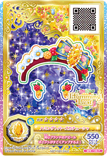 Humming Topaz Coord (ハミングトパーズコーデ) is a jeweling rare coord by the cute brand Humming Leaf. It first debuted in Part 3 of the Data Carddass Aikatsu Friends! Brilliant Jewel series.