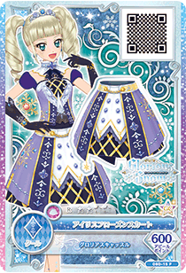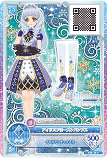 Iris Frozen Coord (アイリスフローズンコーデ) is a rare coord made by the cool brand Glorious Snow. It debuted in Part 3 of the promotional collection of the Data Carddass Aikatsu on Parade! series and did not appear in the anime.