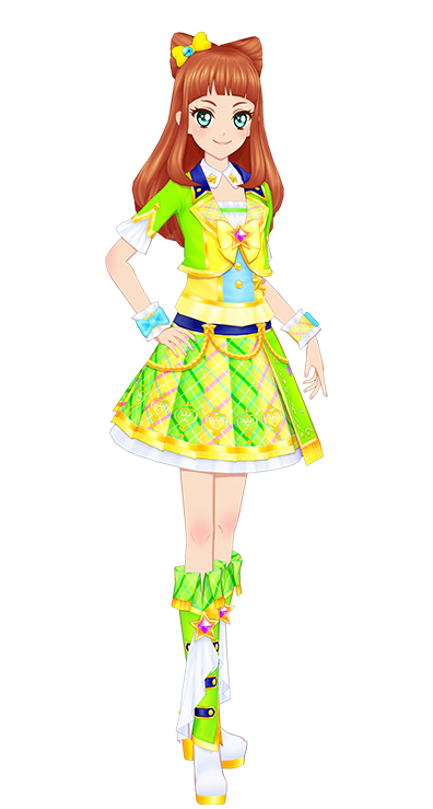Lime Marching Coord (ライムマーチングコーデ) is Ako Saotome's school dress. It first debuted in Part 2 of the Promotional Collection of the Data Carddass Aikatsu Stars! Wings of Stars series.