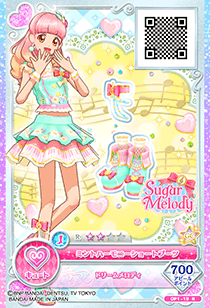 Mint Harmony Coord (ミントハーモニーコーデ) is a rare coord made by the cute brand Sugar Melody. It debuted in Part 1 of the Data Carddass Aikatsu on Parade! series and did not appear in the anime.