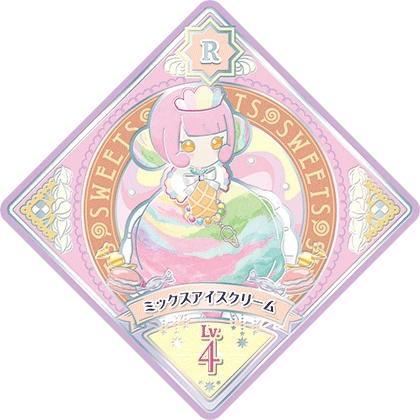 Mix Ice Cream (ミックスアイスクリーム) is a Sweets attributed Dressia. It will debut in Part 4 of the Data Carddass Aikatsu Planet! series and has yet to be seen in the live-action and anime.
