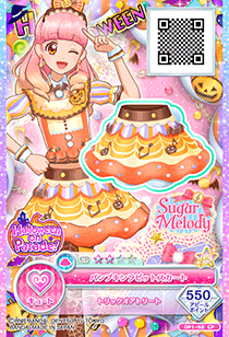 Kitty Tricky Coord (パンプキンラビットコーデ) is a Campaign Rare coord made by the cute brand Sugar Melody. It debuted in Part 1 of the Data Carddass Aikatsu on Parade! series as part of the Halloween on Parade! campaign and did not appear in the anime.
