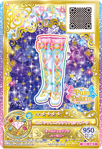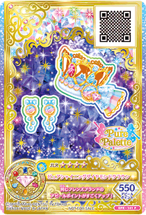 Pure Shining Diamond Coord (ピュアシャイニングダイヤモンドコーデ) is a jeweling rare coord made by the unit-brand Pure Palette and is Aine Yūki's Pure Palette Unit Coord. It first debuted in Part 3 of the Data Carddass Aikatsu Friends! Brilliant Jewel series.
