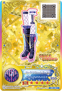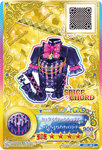 Rock My Heart Coord (ロックマイハートコーデ) is a premium rare coord made by the cool brand Spice Chord. It first debuted in Part 2 of the Data Carddass Aikatsu Stars! Wings of Stars series.