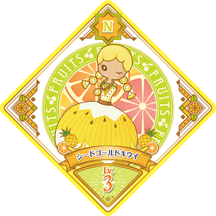 Seed Gold Kiwi (シードゴールドキウイ) is a Fruits attributed Dressia. It debuted in Part 6 of the Data Carddass Aikatsu Planet! series.