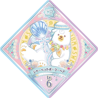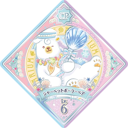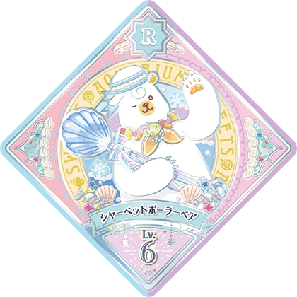 Sherbet Polar Bear (シャーベットポーラーベア) is a Lovely Marron unit attributed Dressia. It debuted in Part 1 of the Data Carddass Aikatsu Planet! Unit Stage series and in Episode ML14 of the web series.
