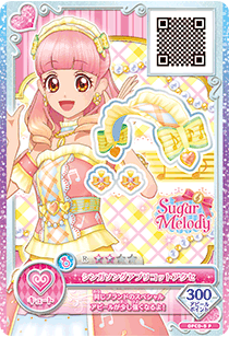 Sing a Song Apricot Coord (シンガソングアプリコットコーデ) is a rare coord made by the cute brand Sugar Melody. It debuted in Part 2 of the promotional collection of the Data Carddass Aikatsu on Parade! Dream Story series and did not appear in the anime. It shares its design with the Sing a Song Pink Coord.
