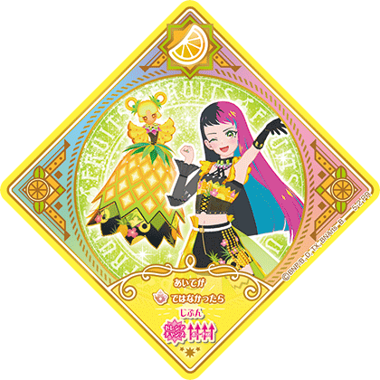 Spiky Pineapple (スパイキーパイナップル) is a Fruits attributed Dressia. It debuted in Part 5 of the Data Carddass Aikatsu Planet! series and in Episode ML3 of the web series.