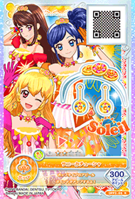 Sunshine Coord (サンシャインコーデ) is a rare coord made by the unit-brand Soleil and is Ichigo Hoshimiya's Soleil Unit Coord. It first debuted in Part 5 of the Data Carddass Aikatsu! series.