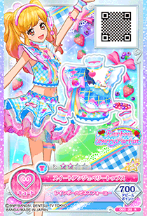 Sweet Ange Berry Coord (スイートアンジュベリーコーデ) is a rare coord by the cute brand Rainbow Berry Parfait. It first debuted in Part 3 of the Data Carddass Aikatsu Stars! Wings of Stars series.
