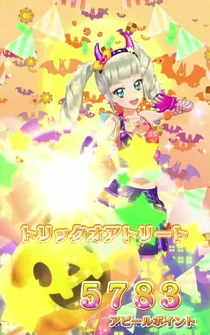 Trick or Treat (トリックオアトリート) is a multi-typed Special Appeal that can be performed when an idol is wearing a Halloween on Parade! Campaign Coord from Data Carddass Aikatsu on Parade! Part 1.