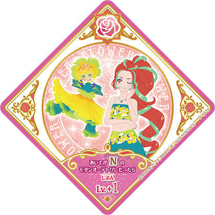 Tropical Hibiscus (トロピカルハイビスカス) is a Flower attributed Dressia. It debuted in Part 3 of the promotional collection of the Data Carddass Aikatsu Planet! series and has yet to be seen in the live-action and anime.