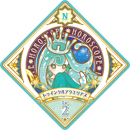 Twinkle Aquarius (トゥインクルアクエリアス) is a Horoscope attributed Dressia. It debuted in Part 1 of the Data Carddass Aikatsu Planet! series and has yet to be seen in the live-action and anime.