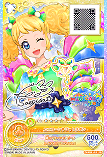 Unicorn Sagittarius Coord (ユニコーンサジットコーデ) is a premium rare coord made by the pop brand Magical Toy. It first debuted in Part 2 of the Data Carddass Aikatsu! 2014 series.