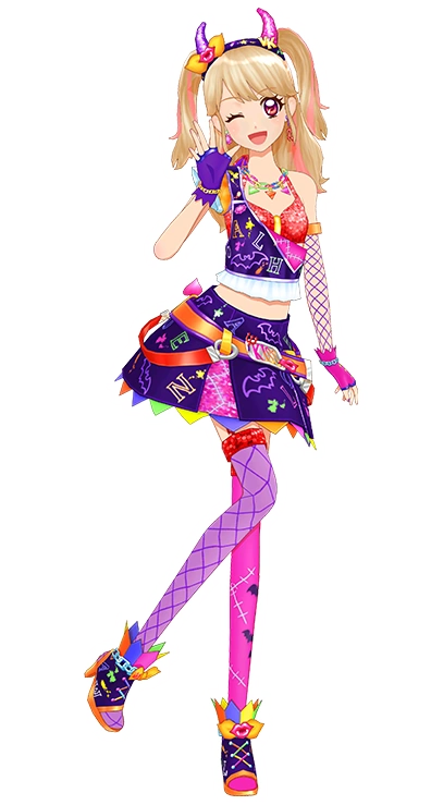 Vivid Devil Coord (ヴィヴィデヴィルコーデ) is a Campaign Rare coord made by the pop brand Vivid Kiss. It debuted in Part 1 of the Data Carddass Aikatsu on Parade! series as part of the Halloween on Parade! campaign and did not appear in the anime.