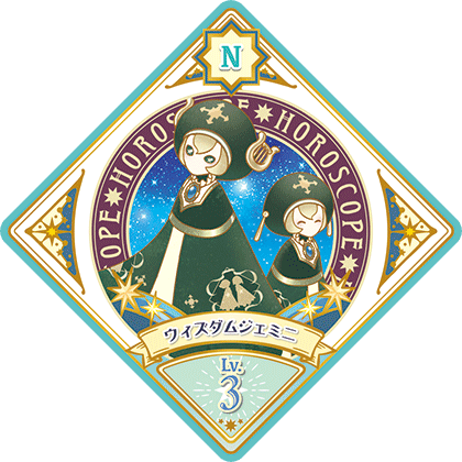 Wisdom Gemini (ウィズダムジェミニ) is a Horoscope attributed Dressia. It debuted in Part 3 of the Data Carddass Aikatsu Planet! series and has yet to be seen in the live-action and anime.